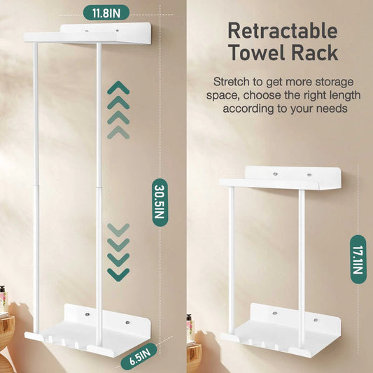 Wall Towel Rack for Rolled Towels, New Upgrade Towel Racks for Bathroom Wall Mounted, Bathroom Bar Towel Storage, Metal Bath Towel Holder for Folded Large Towel Washcloths, White